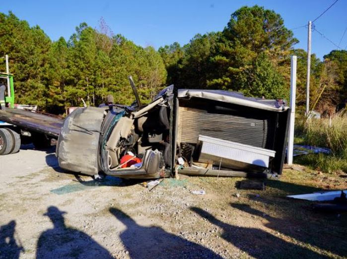 Corinth Holders Fire department quickly responded to the accident and found one man trapped in his overturned pickup truck.