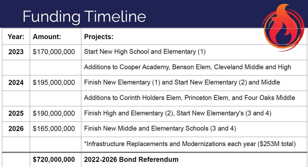 We reached out to Johnston County Manager Rick Hester to find out how much Johnston County could borrow for a new school bond referendum without raising property taxes. Hester said he hopes to have a number soon, once a capital improvements study is completed.