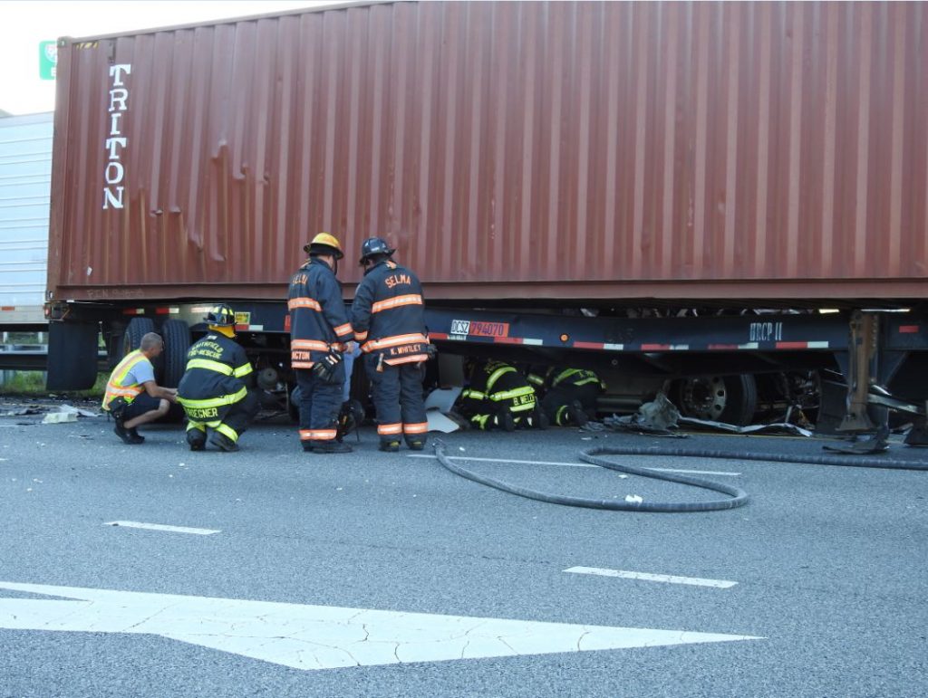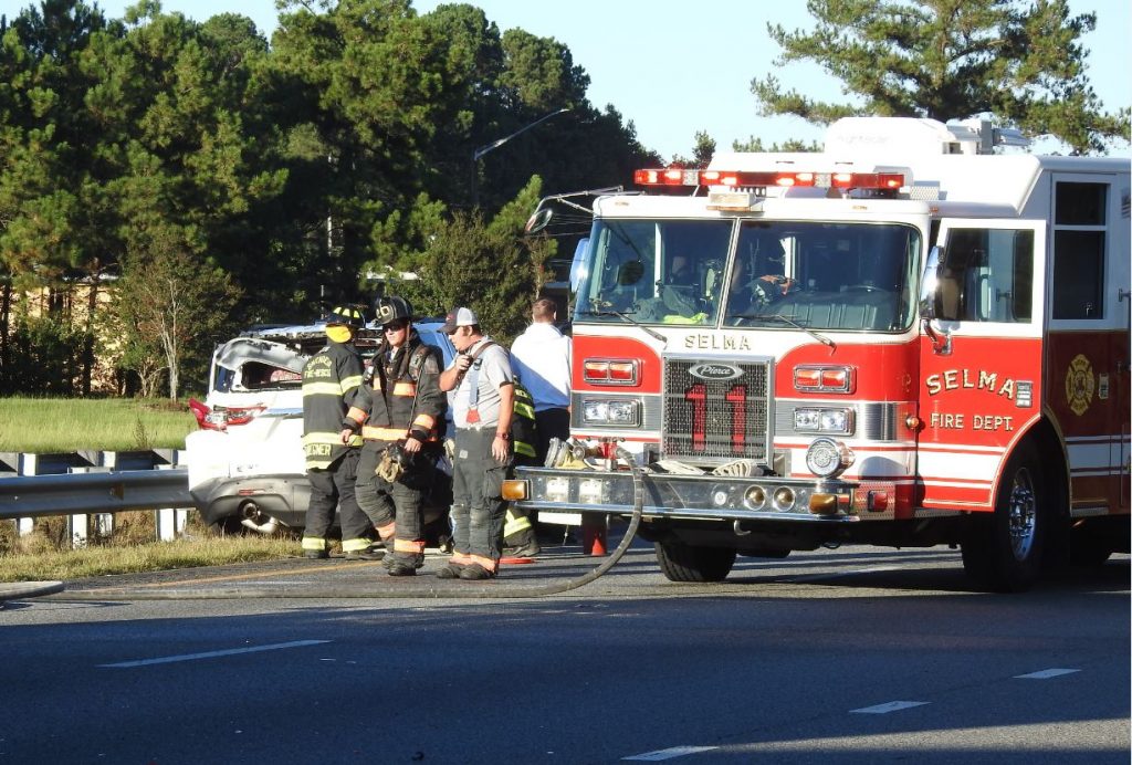 The Selma Fire Department was on I-95 extinguishing a small brush fire beside the interstate when the accident happened.