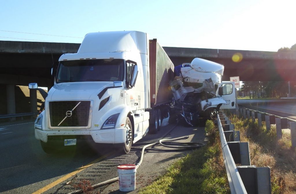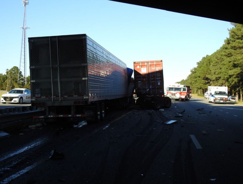 SELMA – A collision involving two tractor trailers and a SUV shut down Interstate 95 in Selma Thursday evening. The accident happened around 6:00pm in the northbound lanes under the US 70 Bridge (Exit 97).