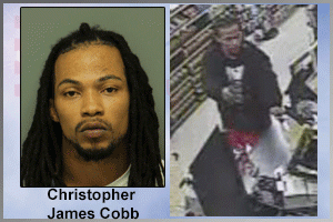 A fugitive task force arrested 27 year-old Christopher James Cobb of Durham at a local in Durham on Friday. Cobb, who has addresses in both Raleigh and Goldsboro, is charged with the February 27th hold up at the Dollar General on Cleveland Road in Johnston County. About 30 minutes later Cobb reportedly robbed a Dollar General store off Rock Quarry Road in Wake County.