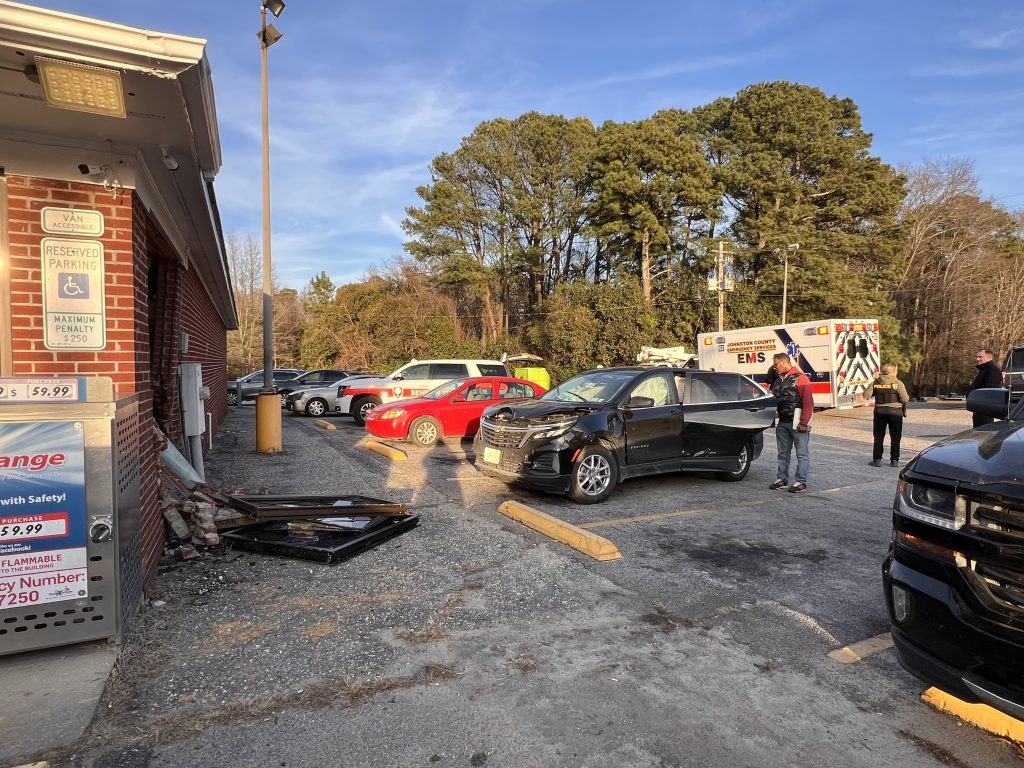 The crash happened at Benson Mart, located at 903 E. Main St., when a car plowed into the building. One occupant of the vehicle was taken to a hospital for treatment. No one inside the store was injured, despite the business being open at the time.
