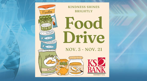 KS Bank is hosting their annual “Kindness Shines Brightly” food drive benefitting local organizations across their market. The food drive runs from November 3rd through November 21st and will benefit…