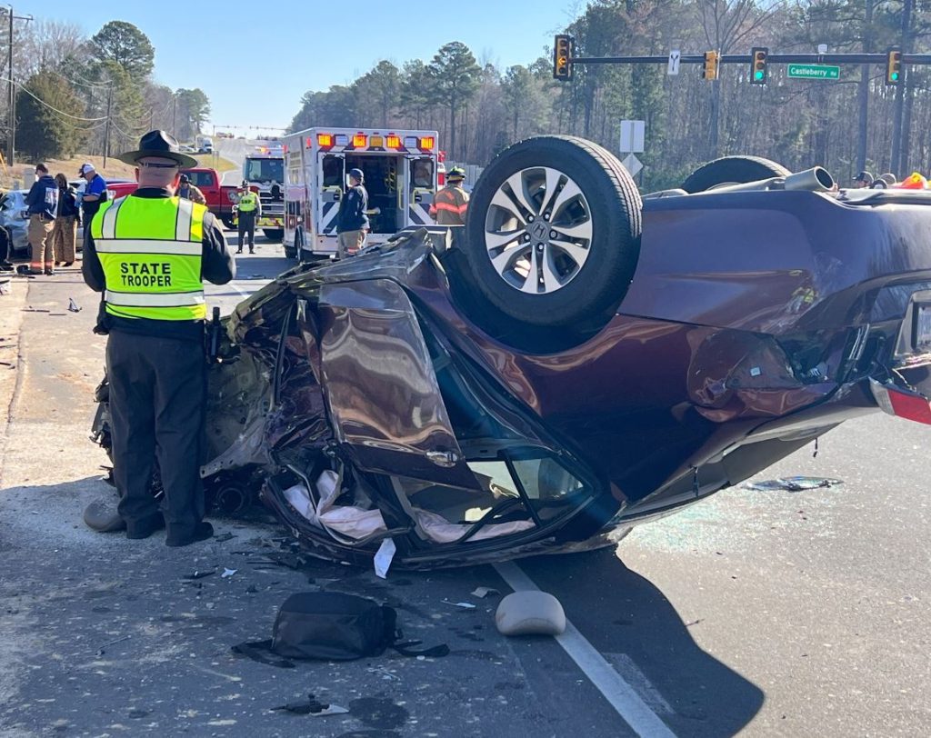 Troopers said the victim, Rita Spensser, was traveling eastbound on NC 42 East in a burgundy Honda and attempting to make a left turn onto Castleberry Road when she was struck by a westbound silver Lexus driven by Justin Christmas.