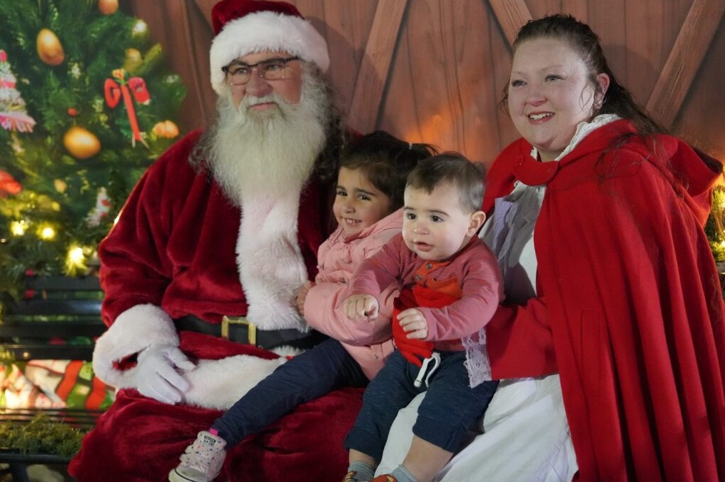 Children can ride a trackless train, pose inside a giant inflatable snow globe, meet Santa and Mrs. Claus, and take part in glitter tattoos and Christmas crafts.