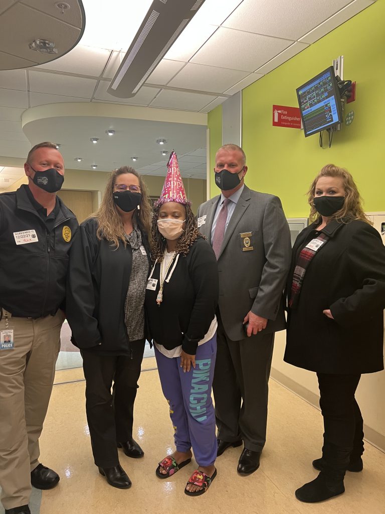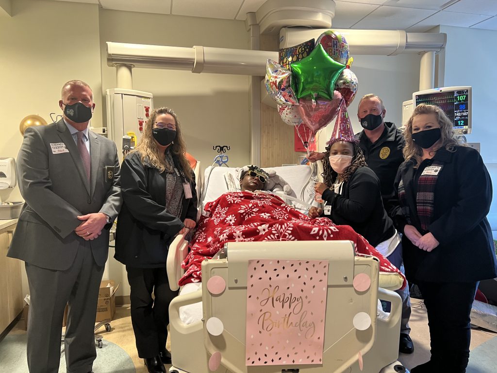 Clayton Police Chief Greg Tart and members of the police department traveled to Wake Med in Raleigh on Wednesday to visit Jada Miller and her family. Jada was hit by a car while crossing Glen Laurel Road on September 18, 2021.