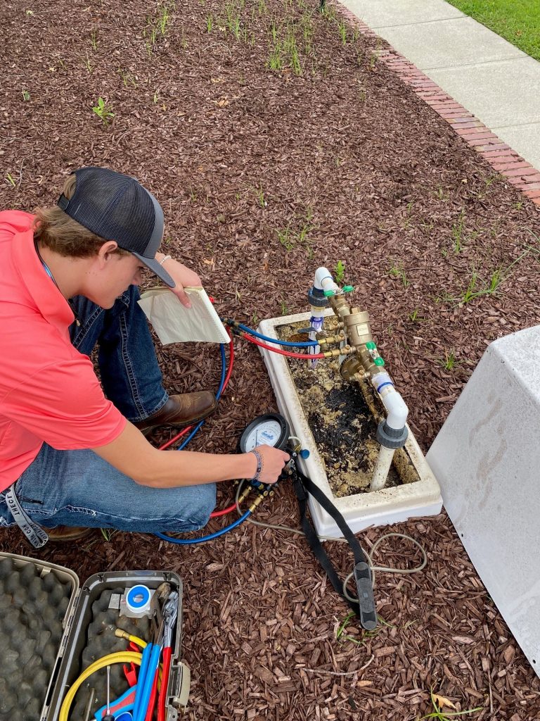 This summer, Lawhorn had the opportunity to work alongside Town of Clayton engineers and water resources professionals. During his internship, he learned how to conduct erosion control inspections, update asset management systems, perform file digitization, collect water samples, and test/repair backflow devices.