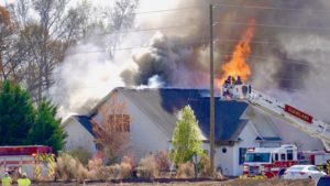 A large home on George Wilton Drive, within sight of the Cleveland Fire Department, caught fire and burned.