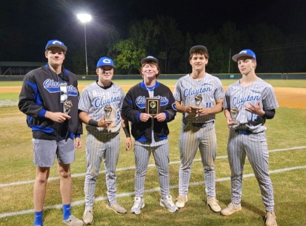 Several Clayton players were recognized for their performances. Parker Kilpatrick, Grant Buchanan, Gabe Schellinger and Davis Duty were named to the all-tournament team. Jackson Clinard was named the tournament’s most valuable player after his performance on the mound against Greenfield.