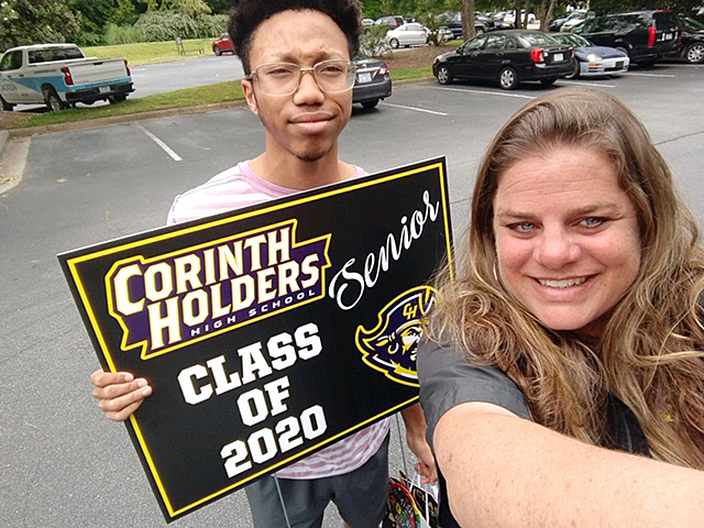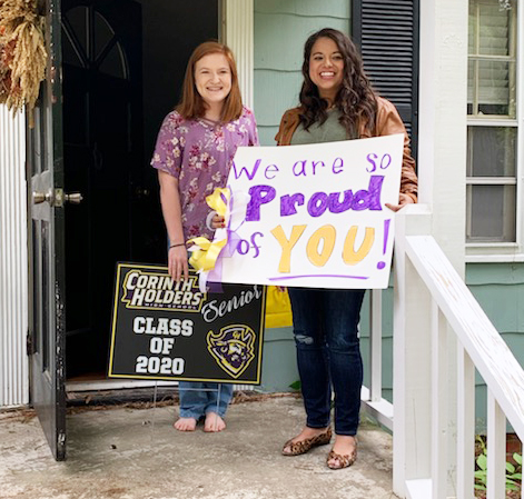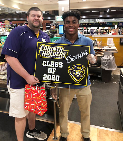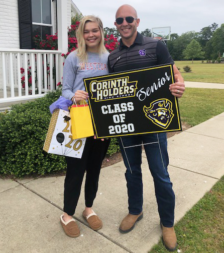 On Wednesday, Corinth Holders High School held an Adopt A Senior Event. A total of 103 school staff paid a visit to all 466 seniors to brighten their day. During the visit they gave each senior a Class of 2020 yard sign and a special gift.
