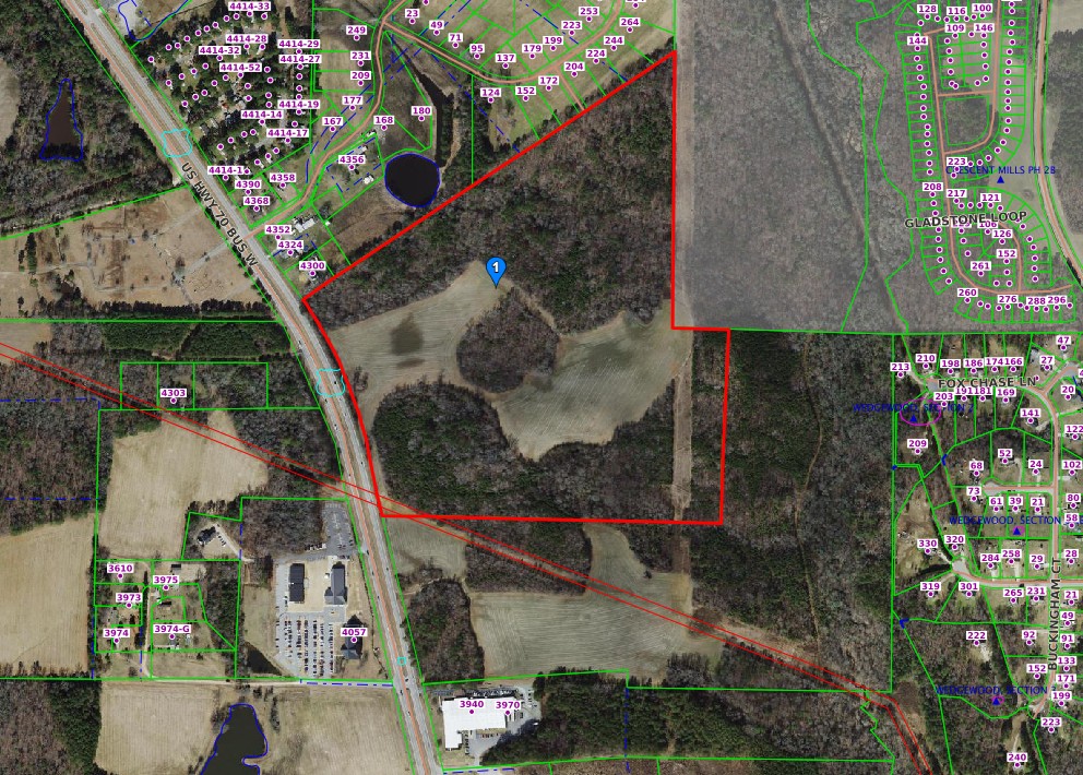 Clarius Partners LLC of Chicago, Illinois petitioned the Town of Smithfield to rezone a 75.6 acre tract of land on US 70 Business West from Residential-Agriculture and Highway-Entrance Commercial to Light Industrial. The property is across the highway from Saint Ann Catholic Church.
