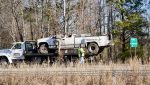 The driver of the overturned truck was trapped inside the wreckage until being extricated by Clayton and Garner firefighters. The driver was transported to the hospital with non-life threatening injuries.