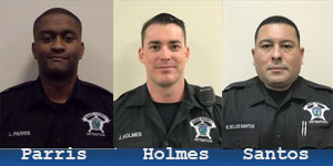 Shortly after noon today (Wednesday), Sergeant Joshua Holmes, Officer Lamar Parris and Officer Ruben De Los Santos jumped into action to assist a man in a medical emergency.