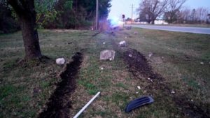 Noah Ethan Durham was traveling southbound on Buffalo Road in his 2017 Ford when he ran off the roadway on the right and struck a small ditch, NC DOT road sign, and a driveway statue. Durham was not injured in the accident.