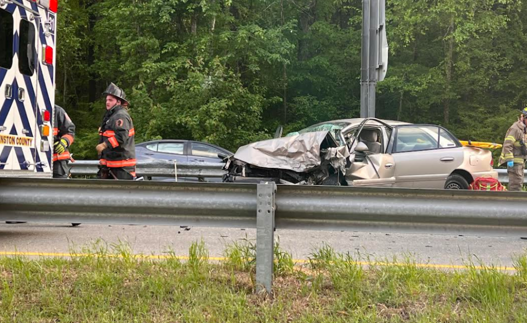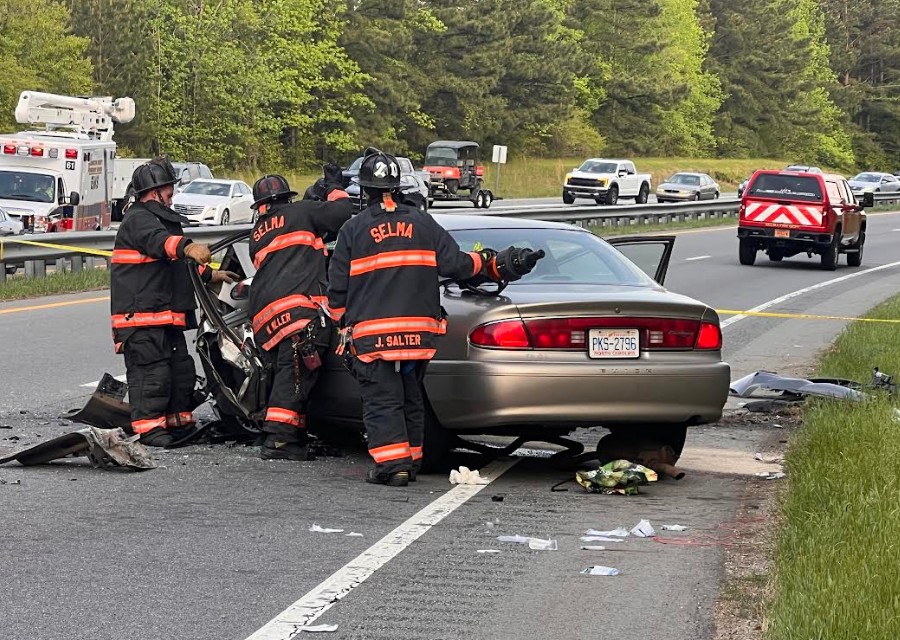 Selma Fire extricated a female passenger pinned in the front passenger seat of the tan Buick. She was transported to Wake Med with serious injuries.