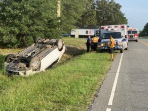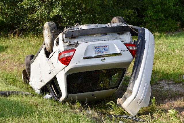 One person was injured when a car overturned on Highway 39 North of Selma near Old Beulah Road.