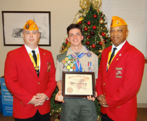 During his ceremony Ryan was presented an Eagle Scout Good Citizenship Award from Eagle Scout Coordinator Lewis W. Rice III of the Johnston County Marine Corps League Carry-On Detachment 1236 (left) and the Assistant Eagle Scout Coordinator Devell “Bull” Durham Jr. of the Marine Corps League Department of North Carolina (right).