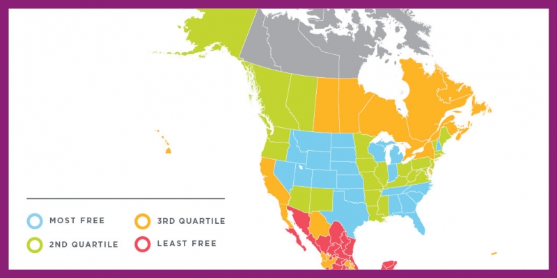 Map showing NC at 6th nationally in economic freedom. Photo courtesy of the Fraser Institute.