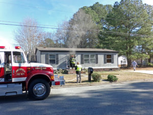 At 10:14am, fire crews responded to a doublewide mobile home on fire at 825 Midway Street. Crews arrived to find a working fire in a bedroom.