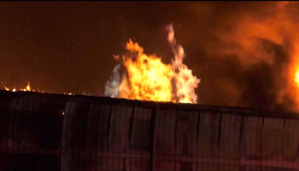 Fire units arrived to find the building fully engulfed in flames with a portion of the roof collapsed.
