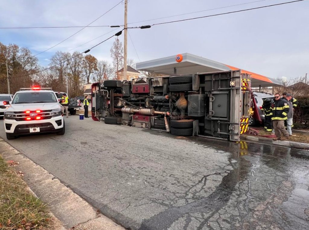 Several of us saw the accident as we were waiting in line at the restaurant across the street. The fire truck came down Market Street going pretty fast in route to a fire call. The lights and siren was on. As the fire truck turned on Seventh Street, the rear tire on drivers side ran upon the corner of the sidewalk across the street from the Chicken Barn and flipped over immediately. We could not see the SUV or what may have contributed to the collision of the two vehicles from our view.