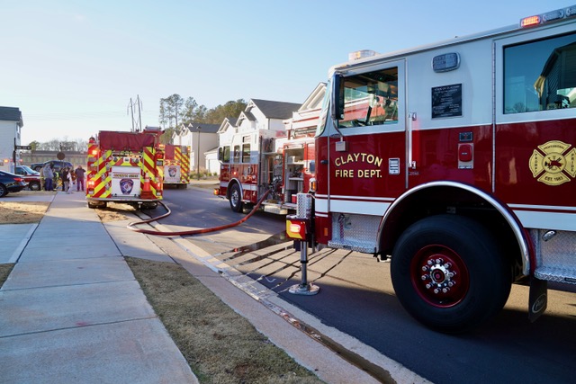 CLAYTON – A weekend fire damaged a home on Coffee Tree Lane in Flowers Plantation. The fire was reported at 3:18pm Sunday in an almost new home near the intersection of Buffalo Road and NC Highway 42.