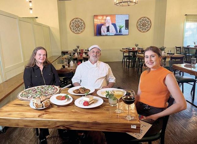 America’s Best Restaurants’ Danyel Deyomo, right, sits with Sarken El Hirechi and his wife, Leila Skander, during a recent filming of the show at El Hirechi’s second location of Garibaldi Trattoria in Garner. Facebook Photo/Garibaldi Trattoria