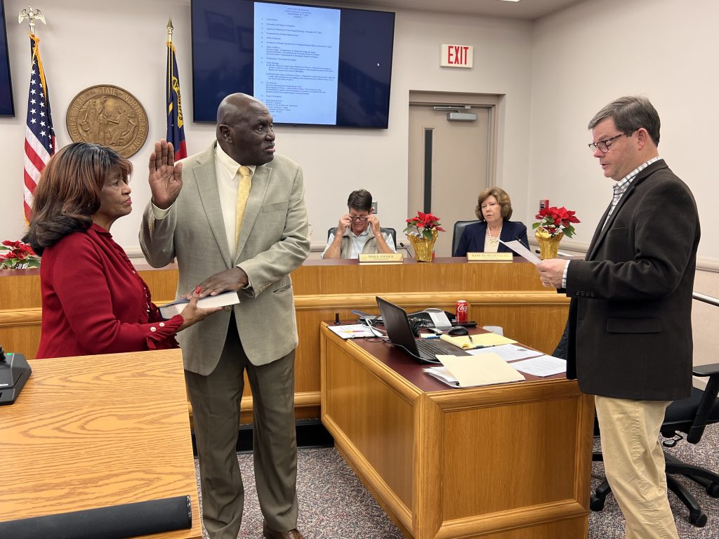 FOUR OAKS – Three commissioners on the Four Oaks Town Council received their oaths, December 18, at the Four Oaks Town Hall.