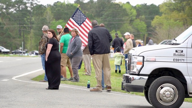 Officers, troopers, paramedics, and firefighters joined hundreds of people from the general public as they lined US Hwy 117, from Mt. Olive to near Goldsboro in honor of fallen Wayne County Trooper Nolan J. Sanders on Tuesday morning.