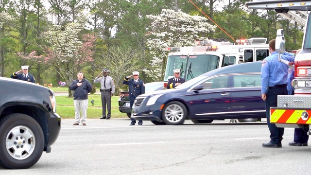 The NC Highway Patrol had asked the public not to line the roadway out of respect for the COVID-19 precautions ordered by the Governor, but they came out anyway. A Highway Patrol motorcycle unit led the procession to the cemetery where the Trooper was also honored with a Highway Patrol helicopter fly-over.
