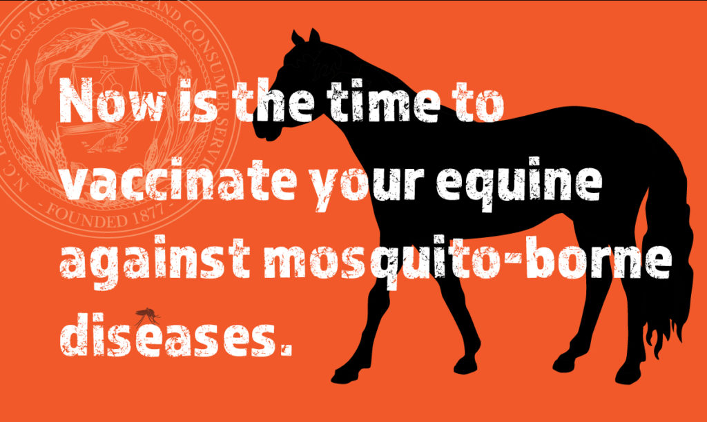 “Mosquito-breeding season in North Carolina lasts from spring until the first frost and horses are at risk if not properly vaccinated,” Troxler said. “EEE is fatal 90 percent of the time in horses and WNV has a fatality rate of 30 percent. But, both diseases are preventable by vaccination.”