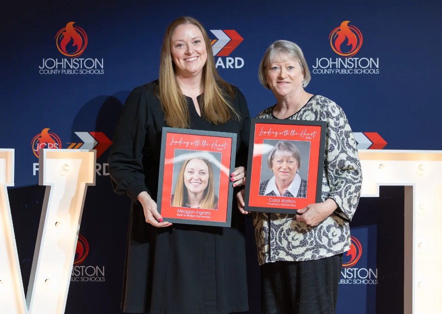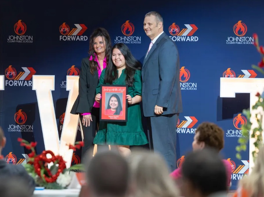JCPS Superintendent Dr. David Pearce and Johnston County Board of Education Chair Lyn Andrews welcomed each honoree to the stage and thanked them personally for the heart they show every day. They also presented each honoree with commemorative momentos, including a framed photo and a Leading with the Heart pin.
