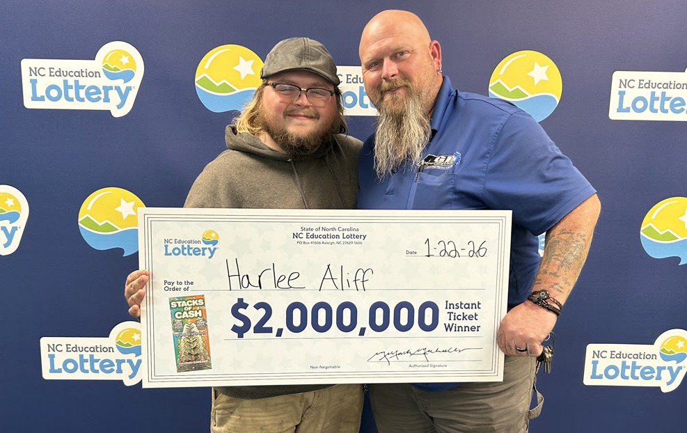 JOHNSTON COUNTY – A routine work break to a local convenience store turned into an unforgettable moment for Harlee Aliff of Kenly when he won the first $2 million top prize in a new lottery game.