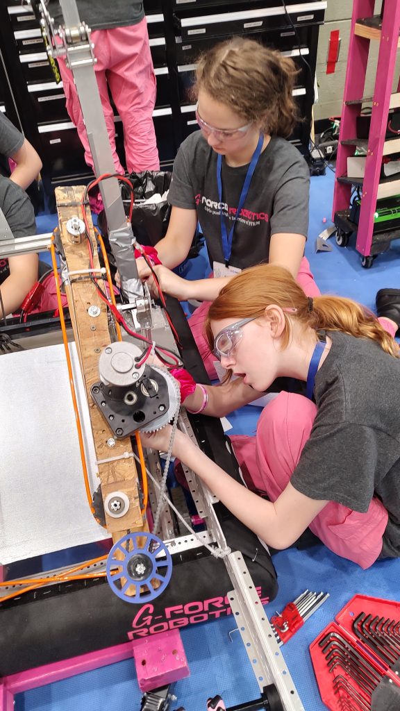 G-Force Robotics started in April 2022 with their rookie robotics season not starting till January 2023. But this small team knew it wanted to get a jump on learning and on the competition, so they started meeting over the summer to build their hand and power tool knowledge and to start design on a basic chassis robot that they could show off in the community.