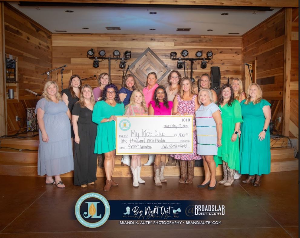 During its 9th Annual Big Night Out – “An Evening of Boots and Bow Ties” at The Barn at Broadslab in Benson on May 17, 2024, JWL presented My Kid’s Club and First in Families Johnston County with Community Impact Grant monies. My Kid’s Club was awarded $1,900 for their Empowering Youth Through Technology: MKC Laptop Enhancement Initiative and First in Families Johnston County was awarded $2,000 for their Feeding and Clothing Johnston County Families with Dignity initiative.