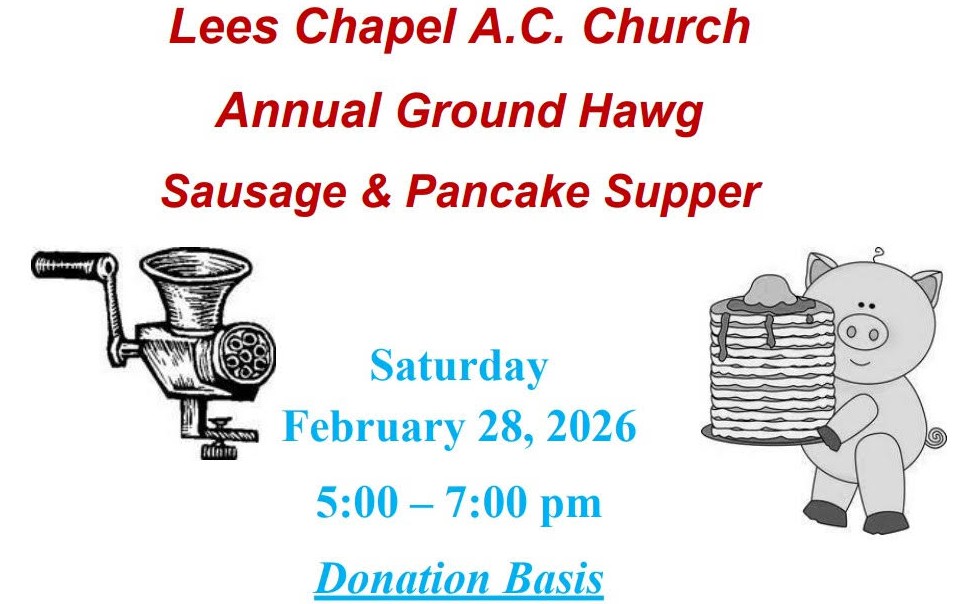 FOUR OAKS — The annual Ground Hawg Sausage & Pancake Supper will be held Saturday, February 28, from 5:00 p.m. to 7:00 p.m. at Lees Chapel Advent Christian Church Fellowship Hall.