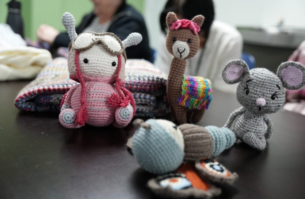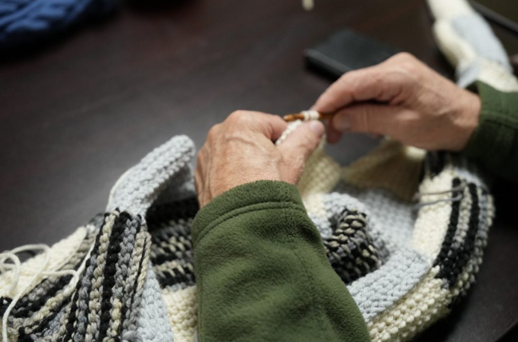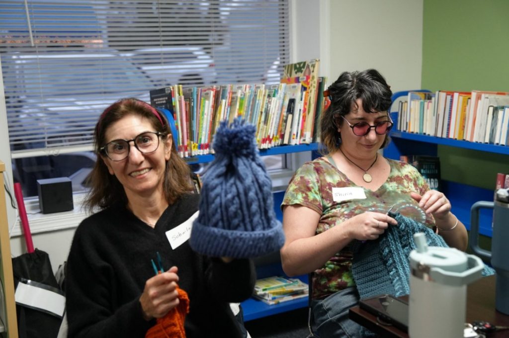 On the other side of the room, Sohaila and her daughter Shirin sat side by side knitting winter hats and scarves. They have attended for some time and treasure the chance to share a hobby they both enjoy while spending meaningful time together. “It is special for us,” said Sohaila. “Shirin and I get to spend time together doing something we both enjoy. At the same time, we are surrounded by people who feel like friends.”