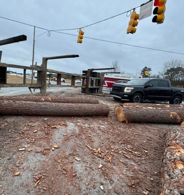 Log Truck Overturns On US 70