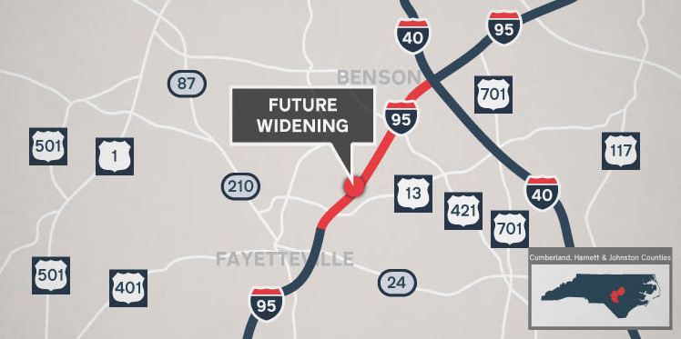The N.C. Department of Transportation plans to award a construction contract in July to upgrade the interchanges and similarly widen I-95 from Exit 71 north to Exit 81 at Interstate 40 in Johnston County.
