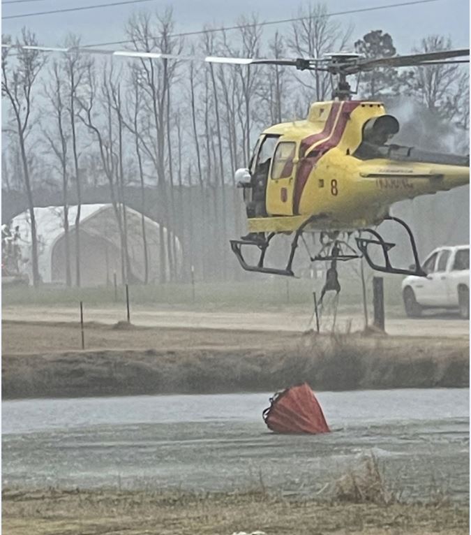 Approximately 20 fire departments from Johnston, Sampson, Wake, and Wayne counties responded. In additional, Johnston County Emergency Management and the NC Forestry Service are on the scene. A Forestry Service helicopter dropped water on the fire for several hours.