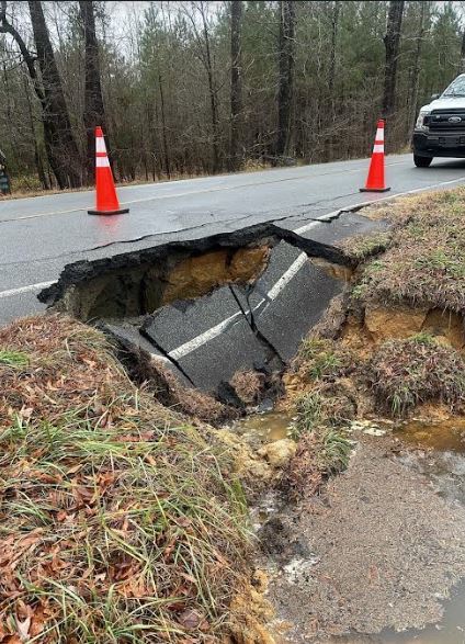 Holly Grove Road has been closed between Beasley Road and T Bar Road until repairs can be made.