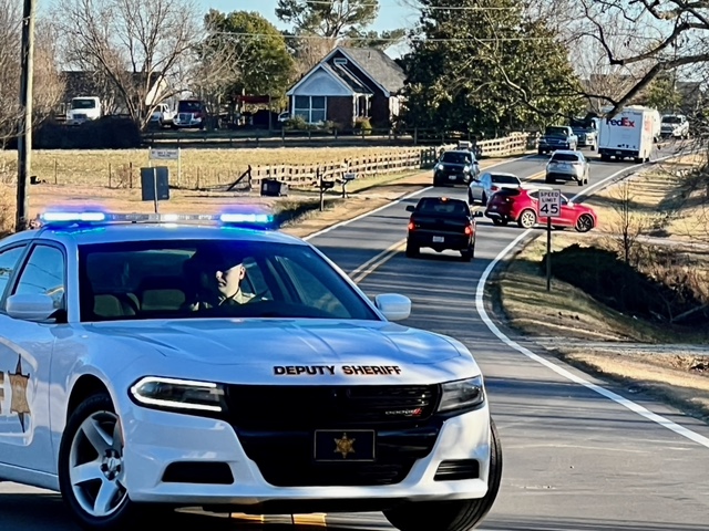 Johnston County deputies blocked traffic from both directions while fire apparatus staged on the busy road.
