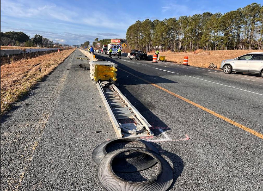 Jersey barrier with a blunt end in the shoulder, collapsible guard did nothing. How many lives have been claimed by this construction zone since it started, and when is it going to be finished?