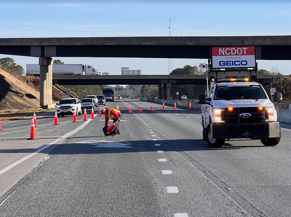 Southbound lanes of I-95 were detoured onto I-40 for approximately two hours before fully reopening.