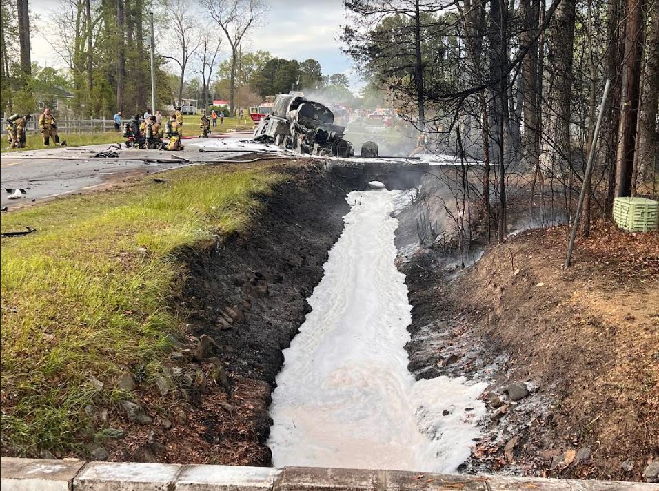 Johnston County Emergency Management, NC Department of Transportation, and a hazardous materials cleanup crew responded to the scene.