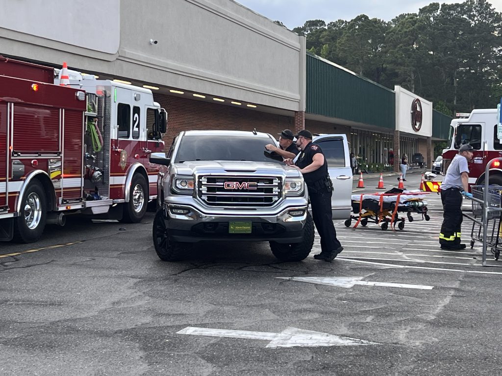The pedestrian appeared to be just feet from the main entrance to Food Lion when they were struck by a silver pickup.