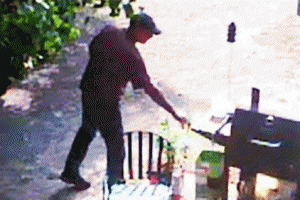 Officers said the suspect, an older white male, driving a gold older-model Jeep Cherokee, stopped at the home and knocked on the door. After no one answered he backed up his SUV to a barn and removed several items.