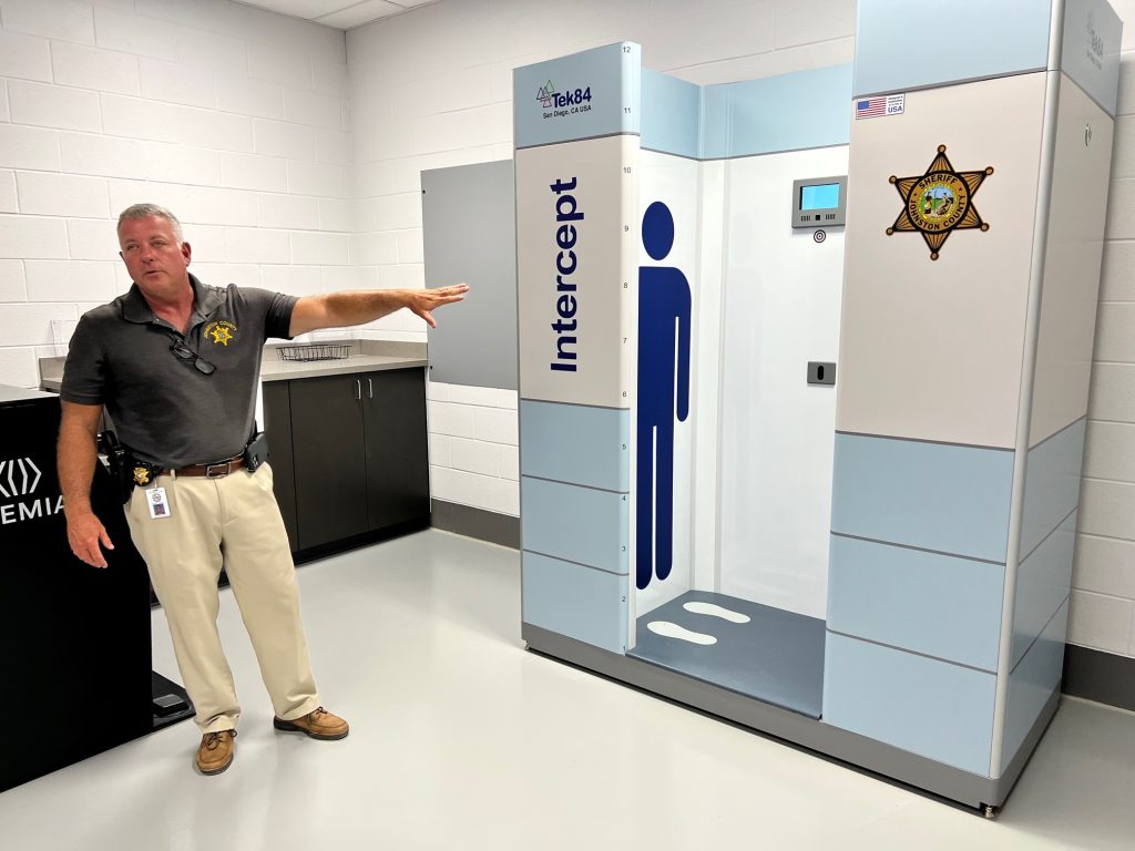The new facility includes a body scanner / x-ray machine to help reduce contraband being smuggled by prisoners. The scanner cost $138,000 dollars and is one of about 20 of its kind in use in the entire state.