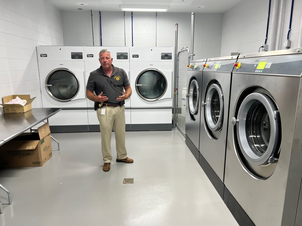 During the tour, Sheriff Bizzell pointed out several ways he and his staff were able to save taxpayer money, including the property storage room, with holds up to 600 bins of inmates’ personal property. A commercial bin system would have cost $350,000. Working with Daniel Clifton, Director of County Maintenance, the bins were made by county employees at a cost of $30,000, saving taxpayers $320,000. The Sheriff also saved on the shipping cost of inmate mattresses by traveling to a western NC mattress factory and picking them up.
