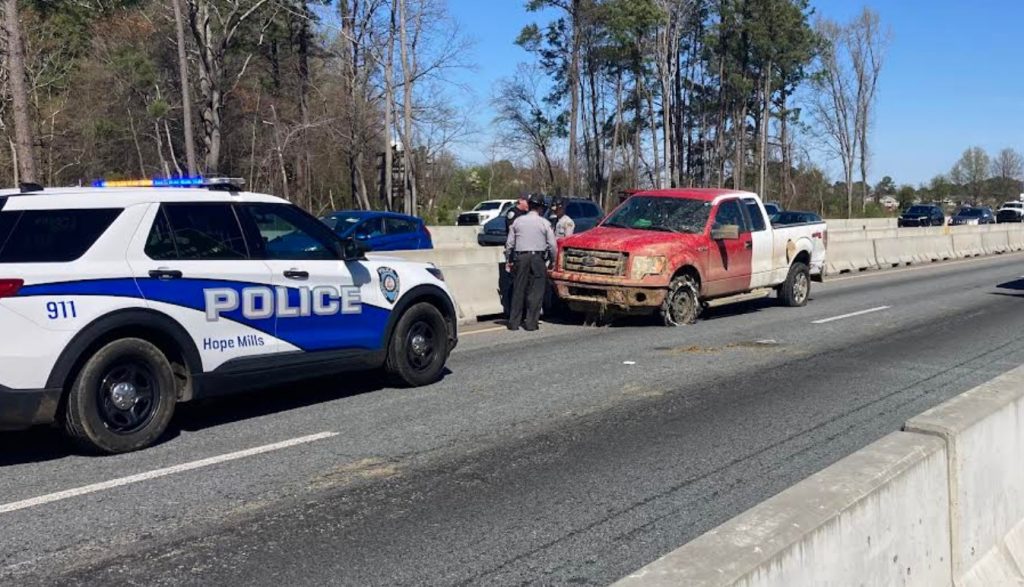 The pursuit reportedly began in Hope Mills when police tried to stop the vehicle following a license plate hit from a Flock camera reader. The chase continued through Cumberland, Harnett, and Johnston counties.